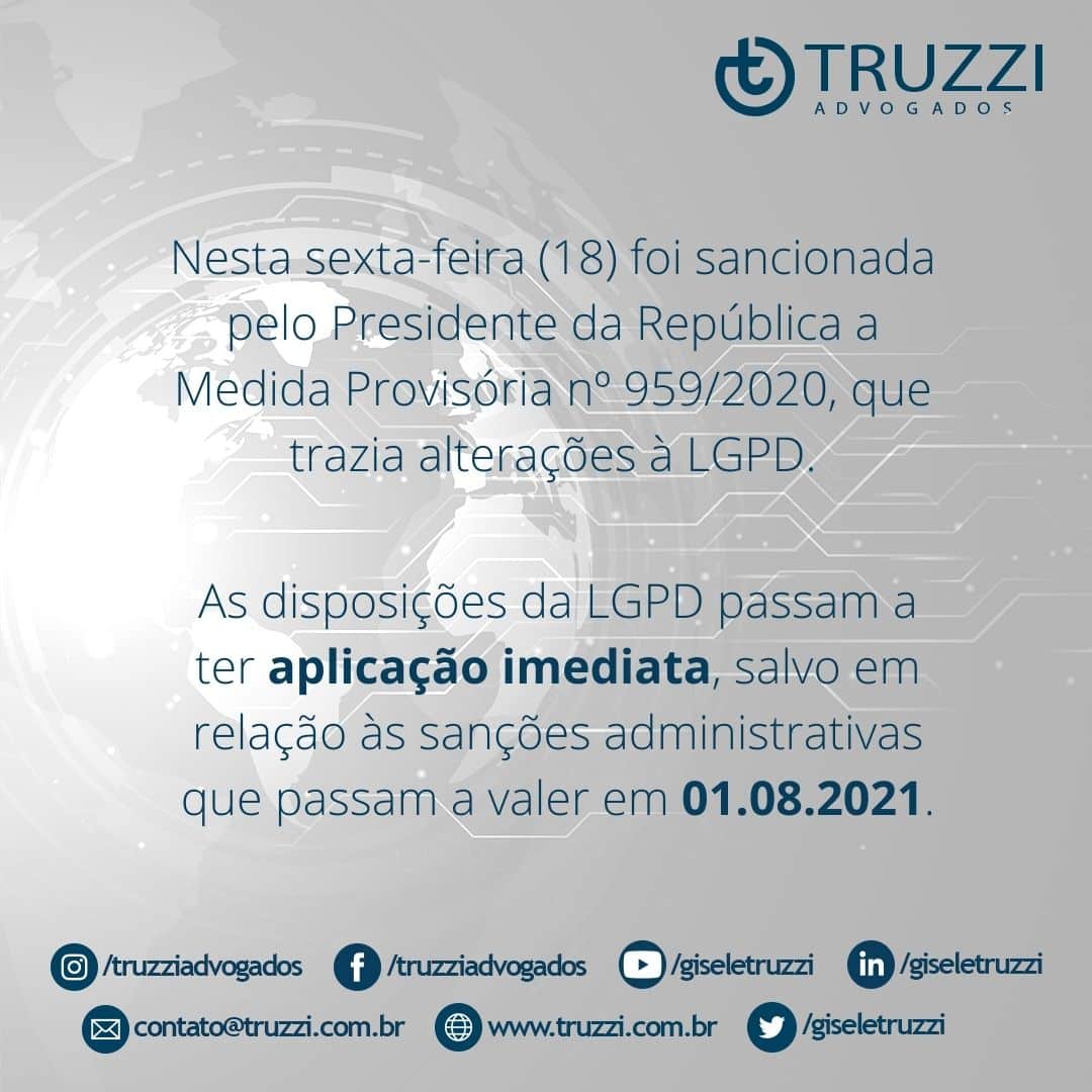 As sanções (incluindo as multas) entrarão em vigor em 01/08/2021, ou seja: somente a partir de agosto/21 é que as empresas poderão ser multadas em virtude do descumprimento da lei.